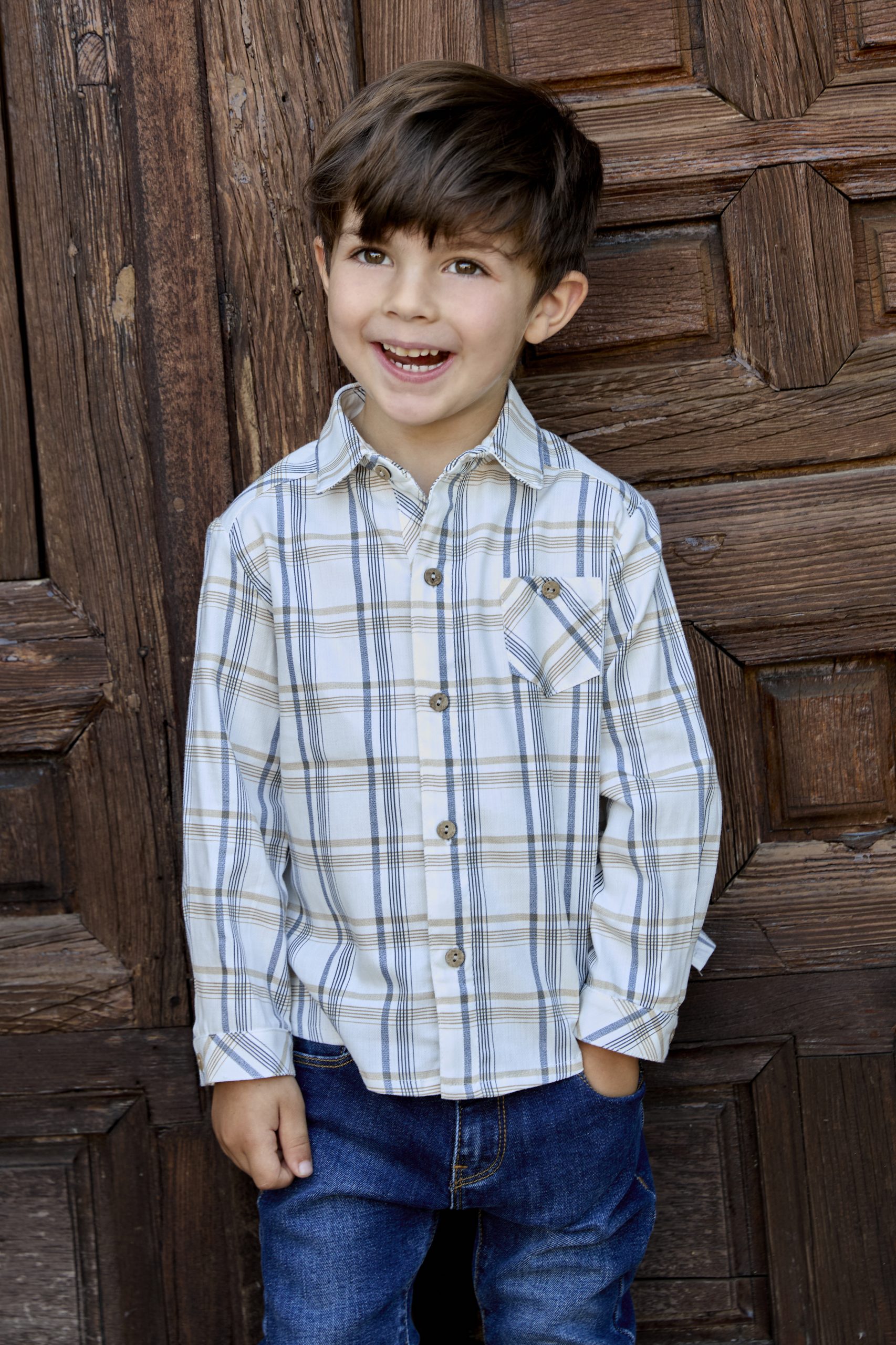 Una prenda versátil y atemporal que no puede faltar en el armario infantil. Su estampado de cuadros en tonos blanco y azul aporta frescura y estilo, ideal para cualquier ocasión.