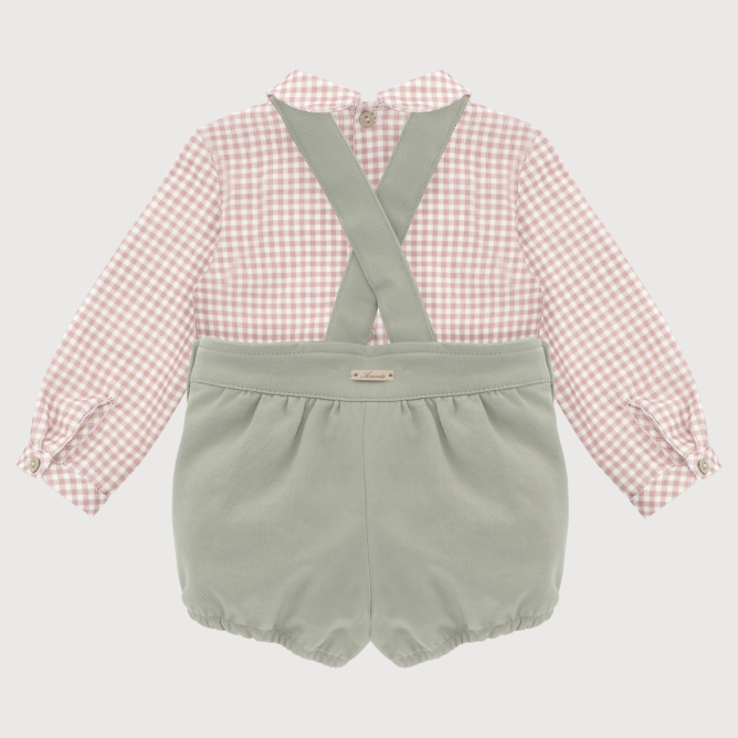 Conjunto de camisa de cuadros rosa y verde con ranita de tirantes