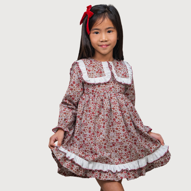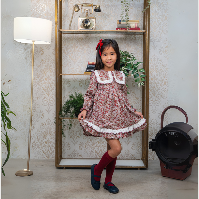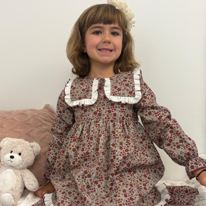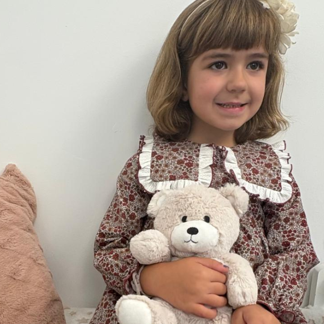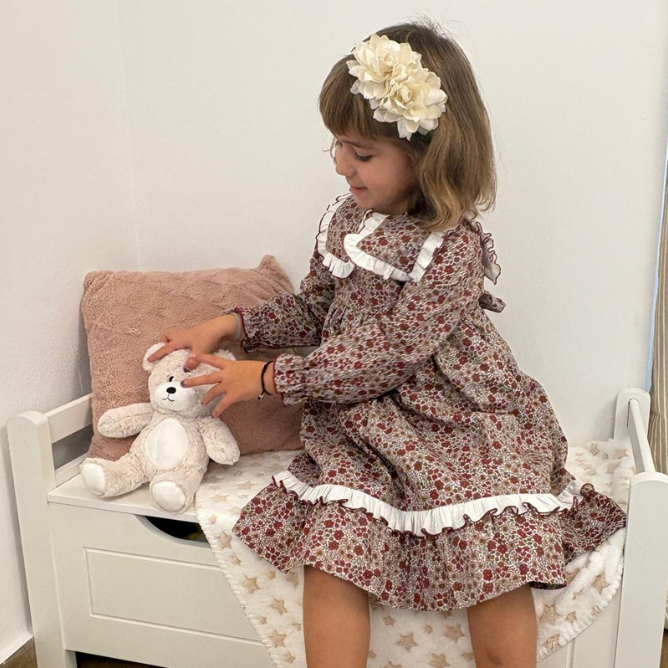 Un diseño romántico y delicado que aporta frescura a cualquier ocasión. Este vestido en tono rosa suave con estampado floral está pensado para resaltar la dulzura de las más pequeñas con un aire elegante y coqueto.