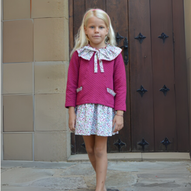 Vestido con chaqueta integrada en color buganvilla.
